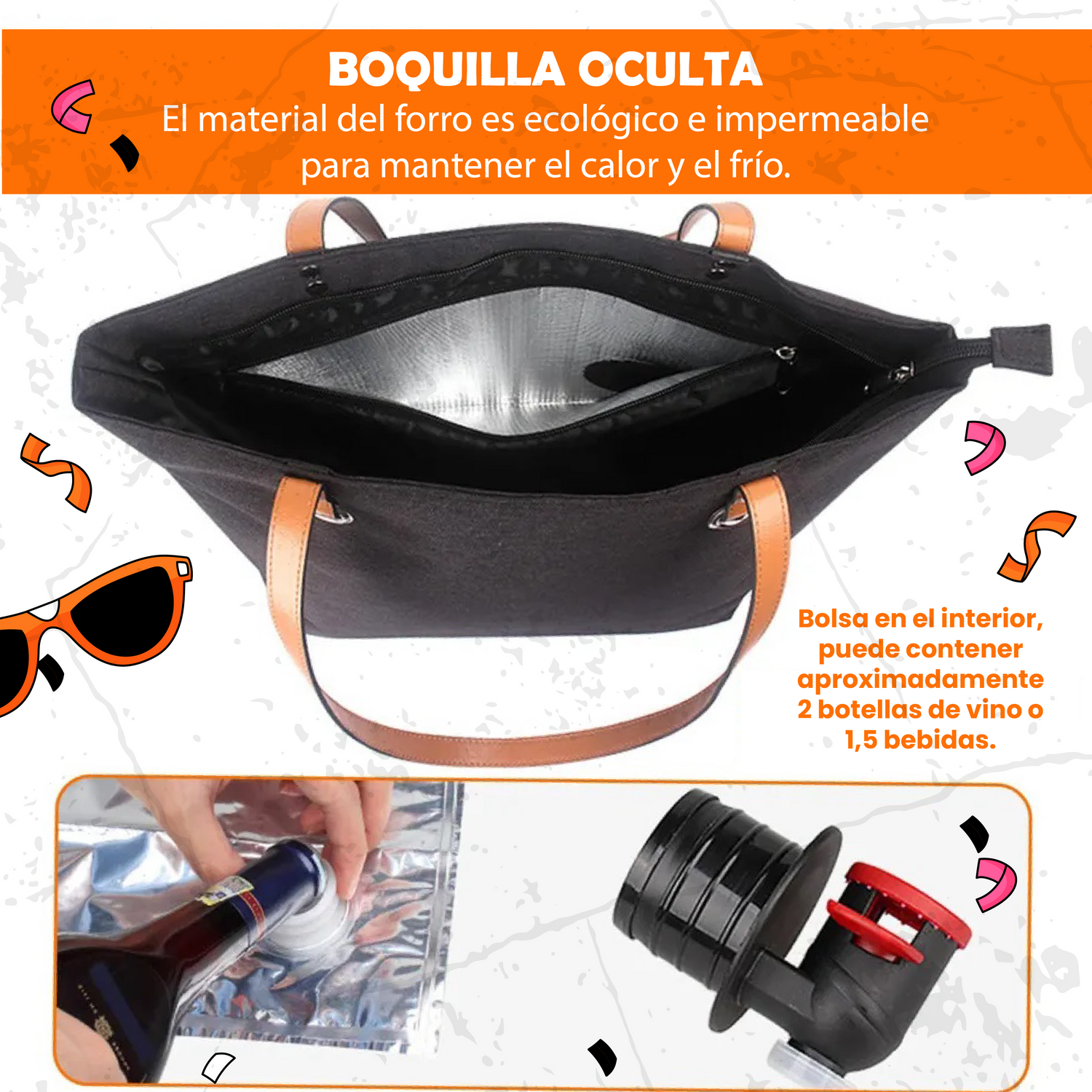 Olvídate de esconder botellas en la mochila. Este bolso elegante guarda hasta 4.5 litros de vino frío con boquilla.