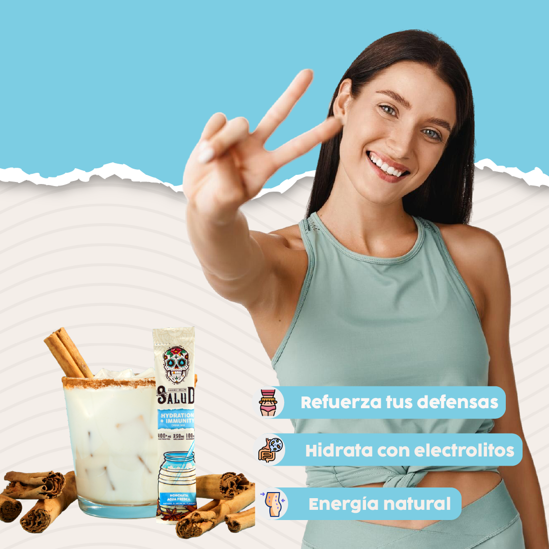 Horchata contiene 400mg de electrolitos + vitaminas + saúco + Wellmune®.