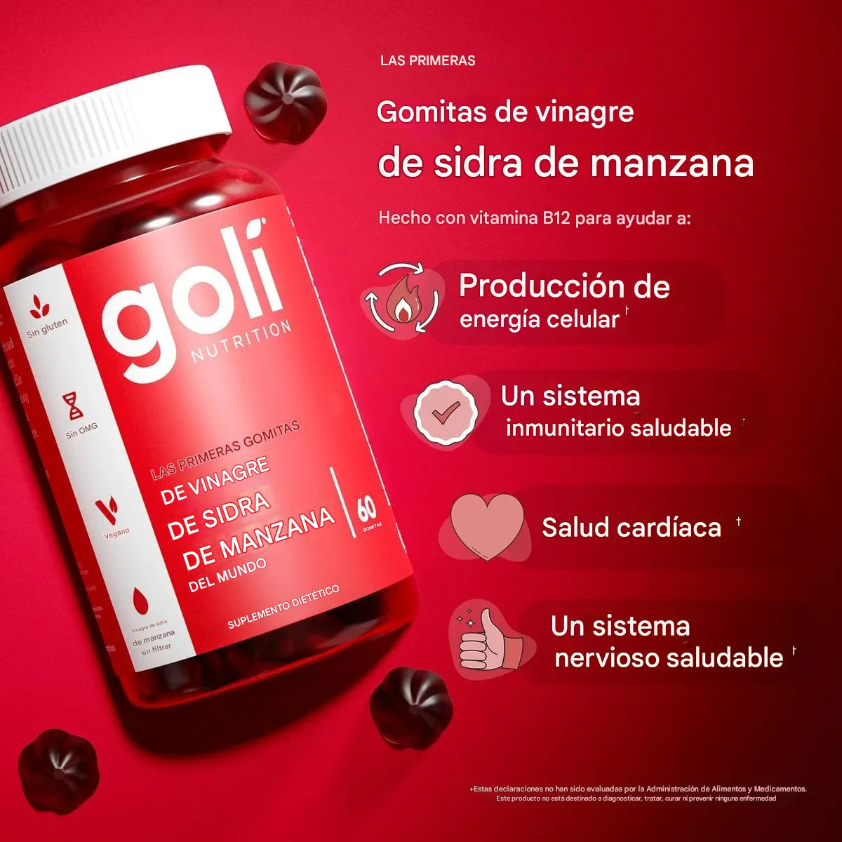 Olvídate de cápsulas difíciles de tomar. Con las gomitas Goli, cada dosis se transforma en una experiencia deliciosa que promueve energía, digestión, relajación y concentración. Una fórmula diseñada para acompañarte todos los días.