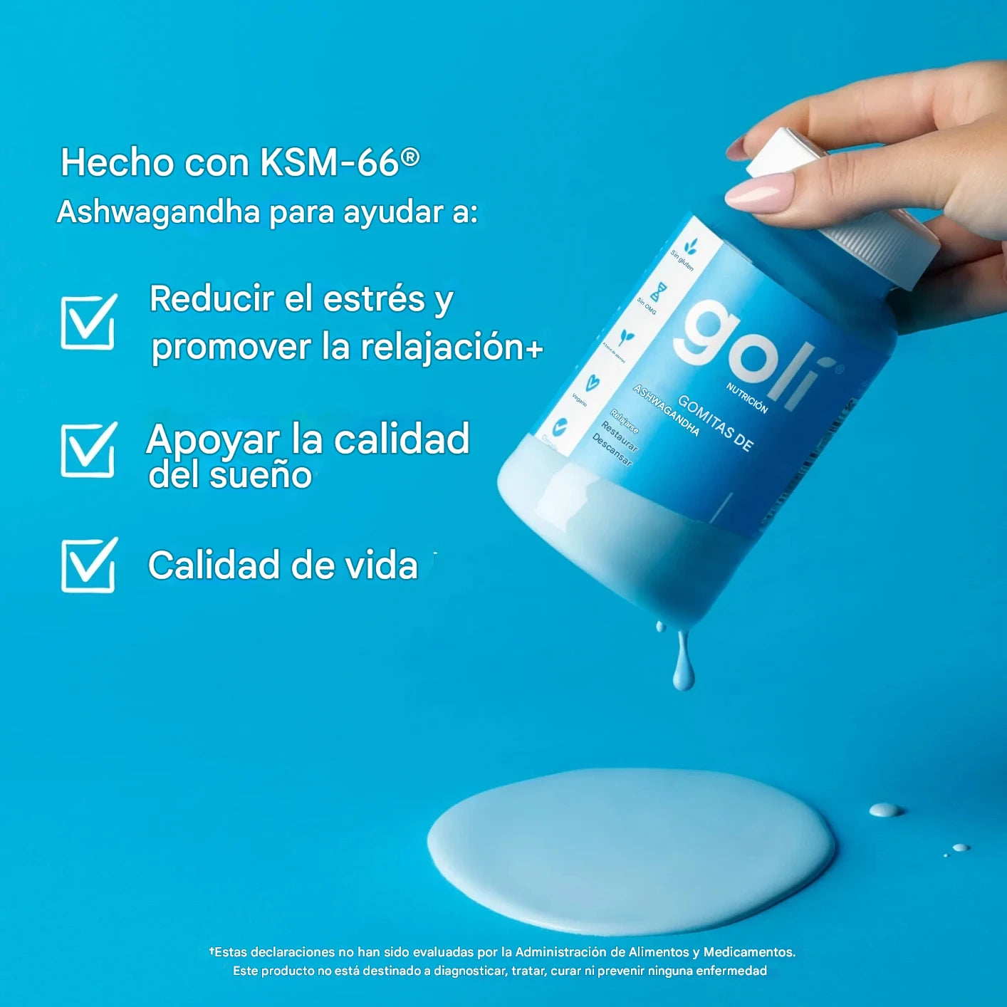 Las gomitas azules de ashwagandha Goli ayudan a reducir los niveles de estrés y ansiedad, mientras que las rojas de vinagre de sidra de manzana aportan energía natural y mejoran tu digestión. Todo en un formato vegano, sin gluten y delicioso.