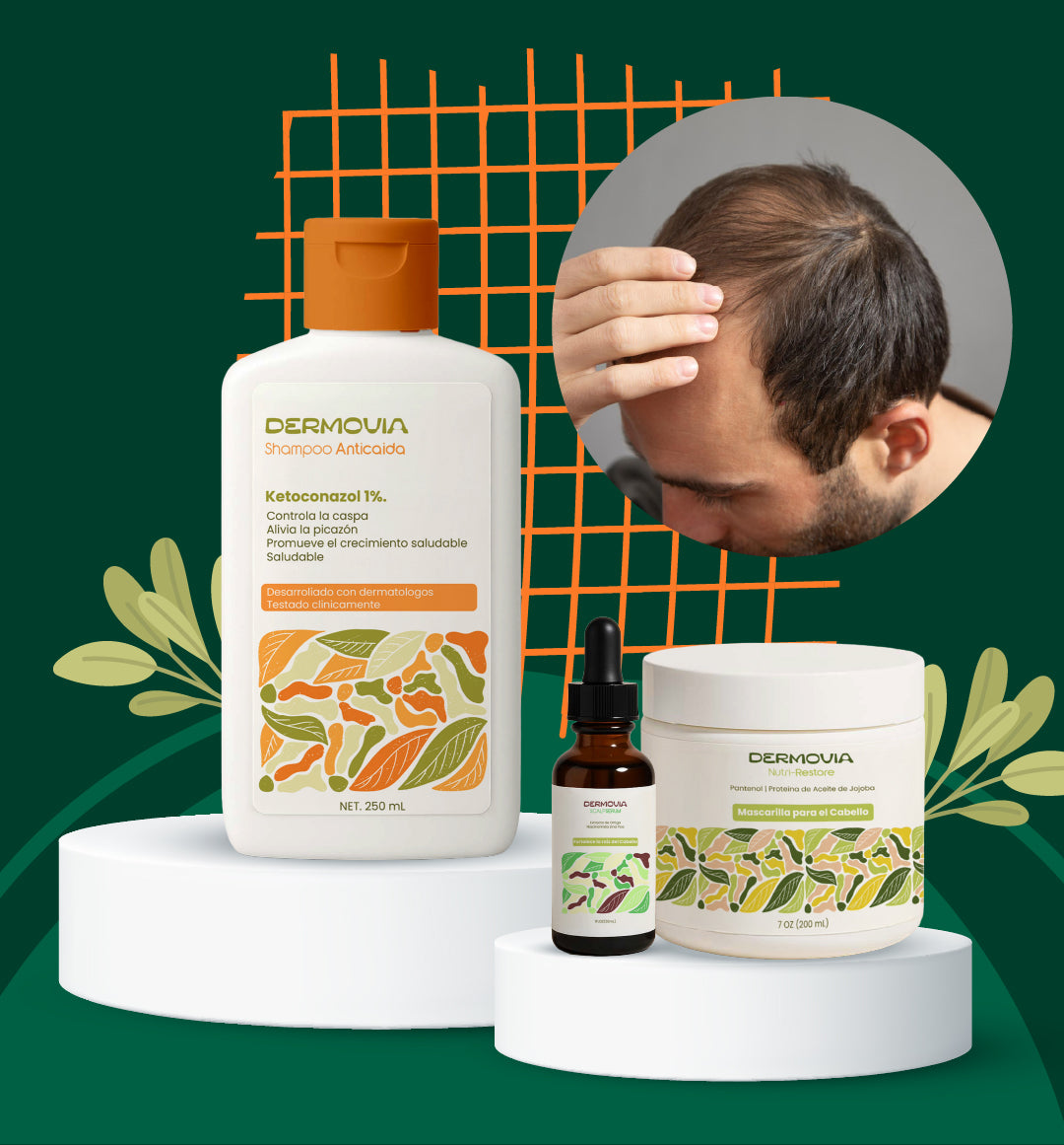 ¿Notas menos volumen, más pérdida al peinarte o picores que no se van? Este no es un tratamiento más. Dermovia® fortalece, calma y devuelve el equilibrio con una rutina integral diseñada para ti.