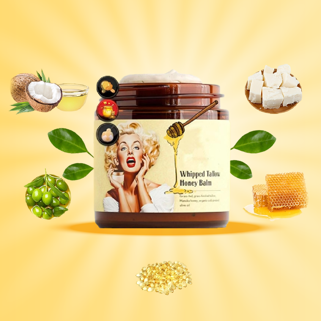 Esto es grasa de ternera alimentada con pasto, miel de manuka pura,