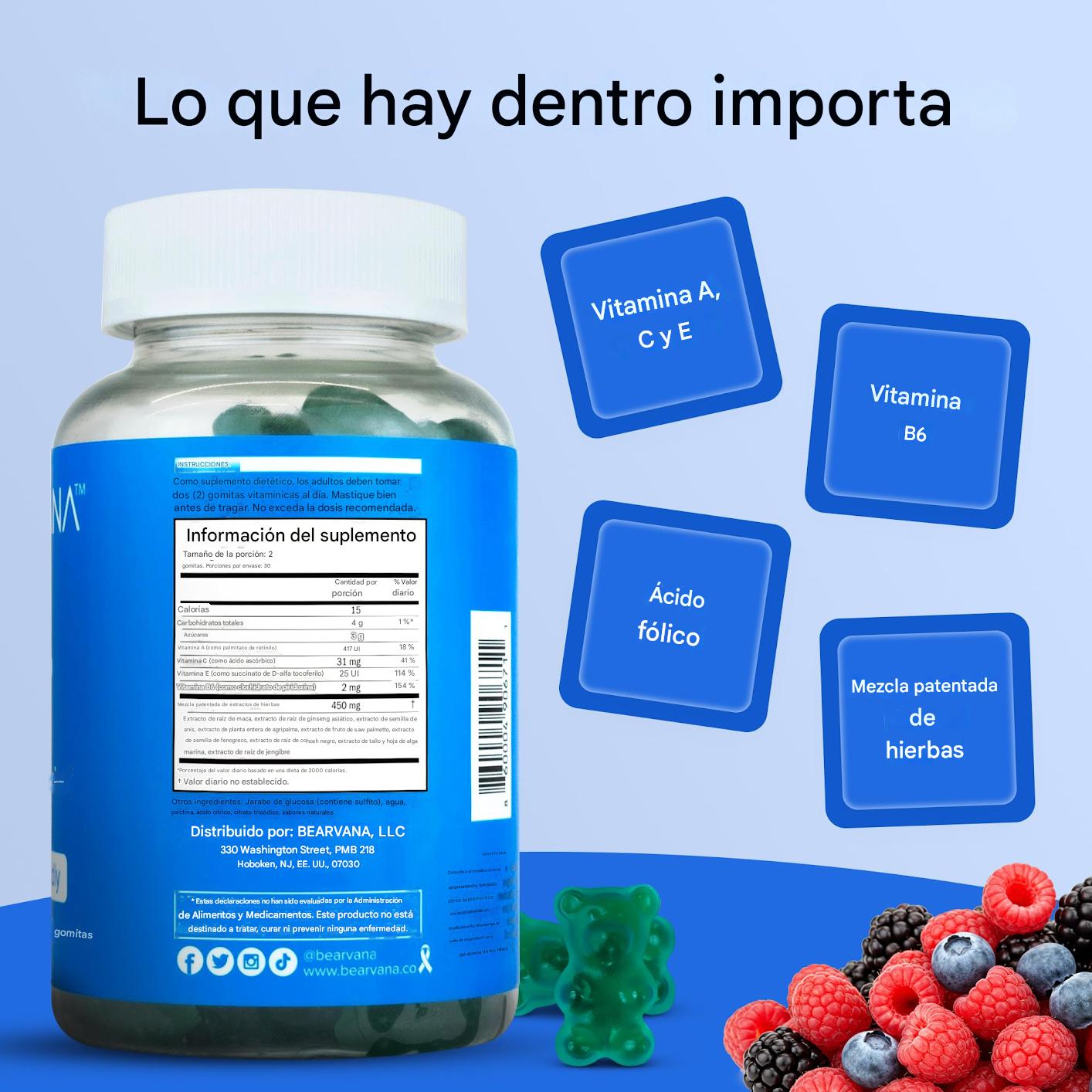 Bearvana no se limita a trabajar en tus curvas. Su contenido de multivitamínicos esenciales fortalece tu cabello, nutre tus uñas y apoya tu bienestar general, dándote una belleza integral desde adentro hacia afuera.