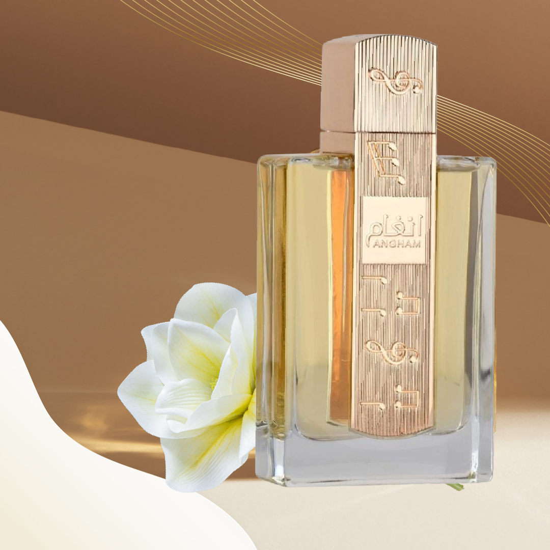 Lattafa Angham es Dulce como la vainilla, intensa como el jengibre, y cálida como el ámbar.