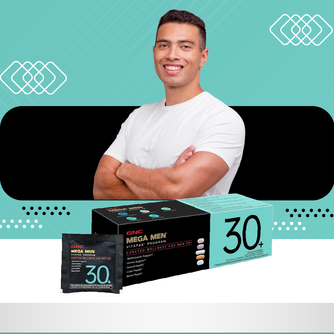 El GNC Vitapak para hombres 30+ ofrece una solución 5 en 1 que va más allá de las vitaminas básicas: apoya tus huesos, mente, sistema inmunológico, rendimiento físico y salud sexual… todo en un sobre al día.