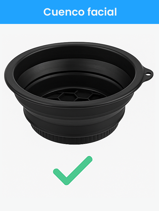 Este cuenco de silicona se pliega fácilmente, ahorrando espacio y permitiéndote mantener tu rutina de cuidado facial sin importar dónde estés.