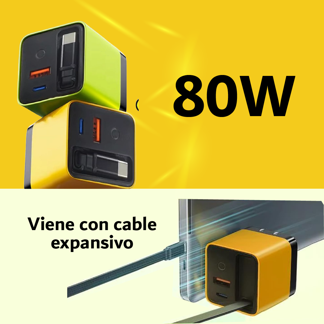 Carga rápida de 80W para laptop, celular y tablet al mismo tiempo,